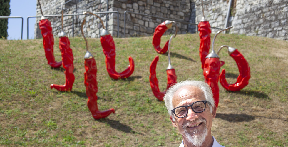 Dal 26 giugno e per tutta l'estate il lungolago Marconi, così come il Castello Oldofredi, i Giardini di Casa Panella e piazza Statuto della cittadina lagunare sono contaminati dai giganti scultorei di Carta dal realismo disarmante e dai vibranti colori: peperoncini, olive, arance, melagrane, fragole e non solo.